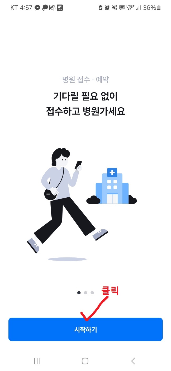 5. 이제 설정을 끝냈습니다. 근처 24시 약국을 찾을 준비가 끝났습니다. 시작하기 버튼 터치해 줍니다.
