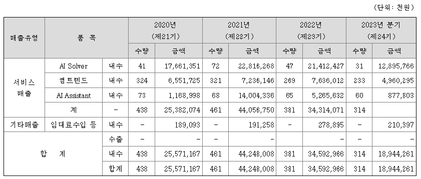 -현재 당사는 인공지능 및 빅데이터 사업을 영위하고 있으며, 제품별로는 썸트렌드, AI Solver, AI Assistant가 있습니다.