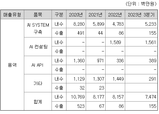 - 특히 최근에는 고객의 요구사항이 특정 데이터 가공 방식의 요구에서 고객사에 필요한 AI모델과 적합한 데이터 처리방식까지 AI 서비스에 대한 전반적인 요청으로 진화하고 있기 때문에, 이러한 포괄적인 서비스 포트폴리오를 운영하는 것은 중요한 영업경쟁력이 될 것으로 전망합니다.